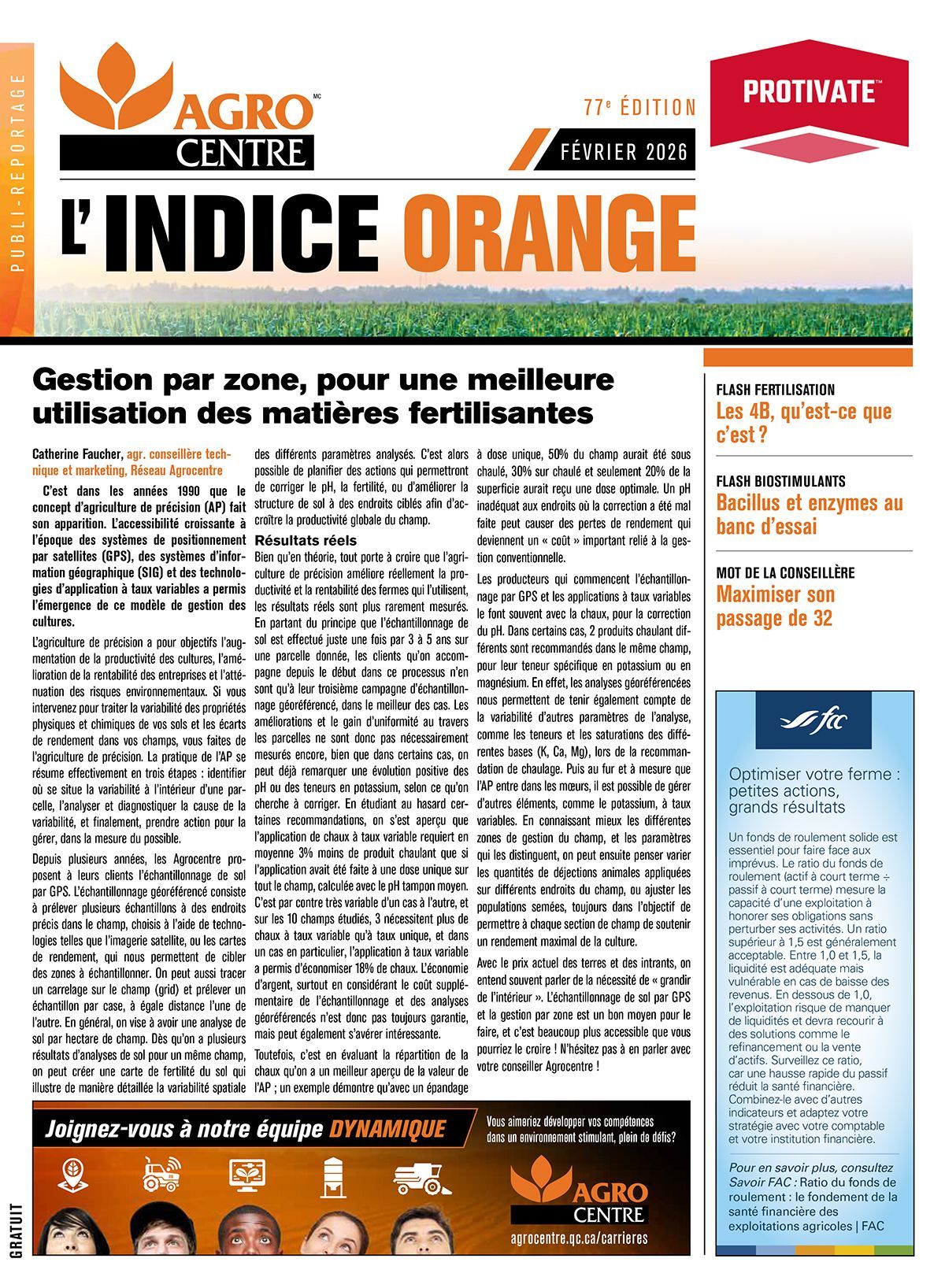 est le moyen de communication choisi par les membres du réseau Agrocentre pour informer les clients et les intervenants de l’industrie. On y parle d’actualité agricole, de développements technologiques, des marchés et aussi un peu de tout...